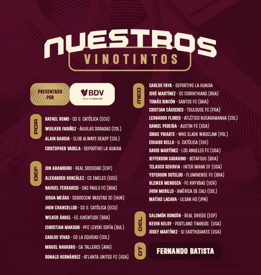 Vinotinto presenta su lista para mantener el puesto de repechaje al Mundial 2026